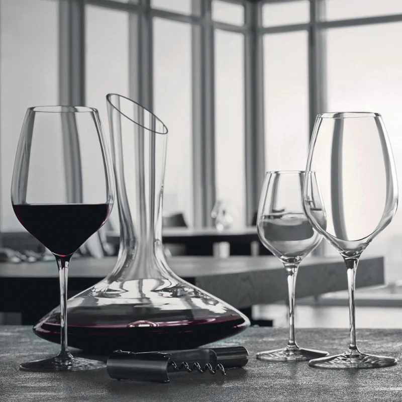 Eleganza e stile italiano, vetro sonoro di altissima purezza e qualità, bordi sottili, leggero e resistente, dedicato all'alta sommellerie, raccomandato per vini rossi.