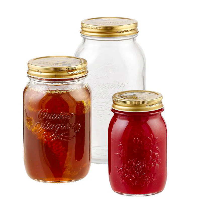 Vaso in vetro con capsula di chiusura ermetica per realizzare e conservare tante buone ricette a base di frutta e verdura, nessuna aggiunta di additivi o conservanti, totale garanzia di igiene e sicurezza alimentare.