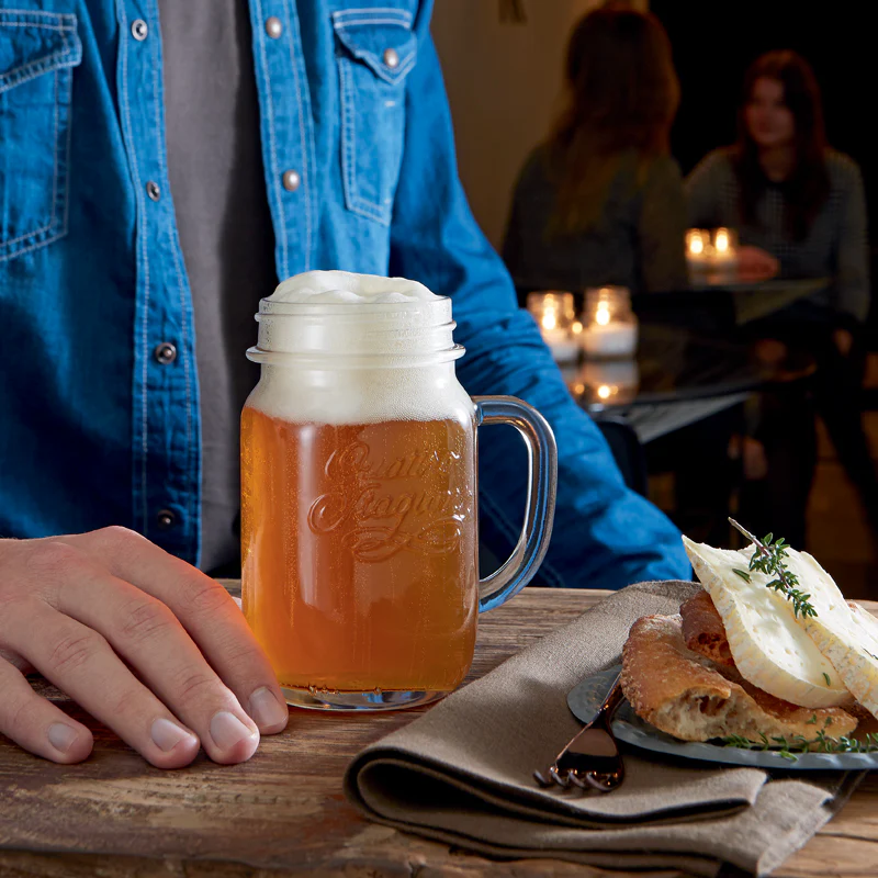 Speciale vasetto con manico originale e versatile, perfetto per servire birra, cocktails, smoothies e drinks, fantastico per offrire gelati e dessert, favoloso per take-away e finger food.