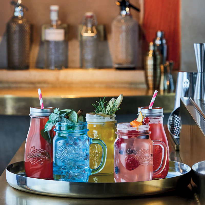 Speciale vasetto con manico originale e versatile, perfetto per servire birra, cocktails, smoothies e drinks, fantastico per offrire gelati e dessert, favoloso per take-away e finger food.