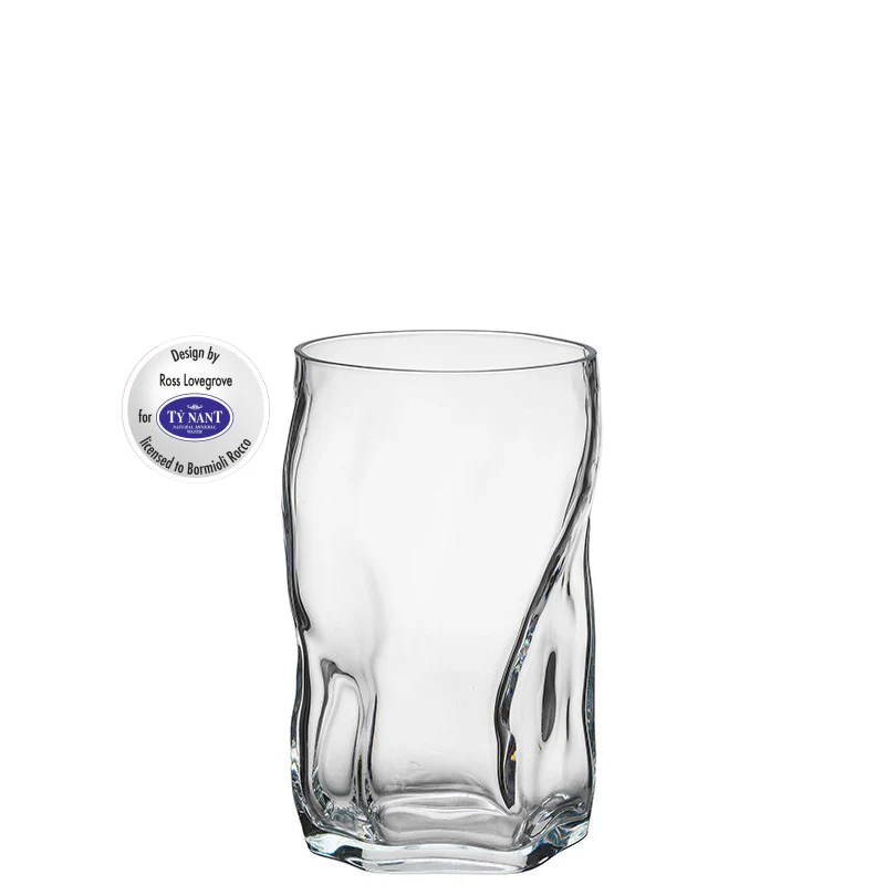 Elegante bicchiere liquore in vetro, originale design evoca tutta la forza dell'acqua sorgiva mostrandone la sinuosità delle linee e la delicatezza delle curve, Design By ROSS LOVEGROVE